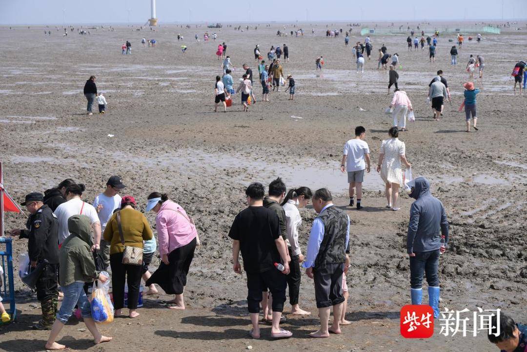 “现在是文蛤最肥美的时节,我们一家人专程来体验‘寻宝’的乐趣。”游客李女士介绍,一直听说小洋口”海上迪斯科”项目很解压,没想到今年又添了新项目,除了采文蛤、打排球、踢足球,还能水塘摸鱼、开沙滩车,孩子玩得很开心。